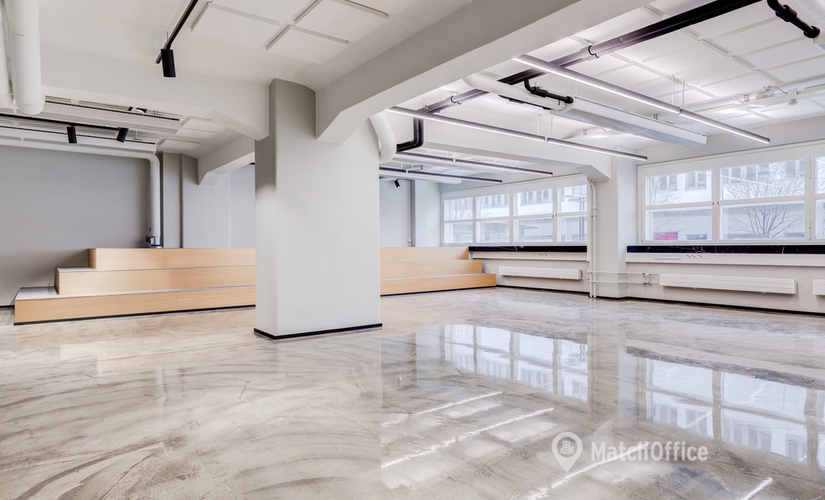 For rent, a unique 232 m² space on the 1st floor (not street level) in a prime location in Kamppi, with its own entrance from Jaakonkatu. The space has an industrial atmosphere with concrete floors. It features a large, bright open office area that connects to a stylish kitchen and dining area. Additionally, there are two meeting rooms, a spacious storage room, and private toilets. The space has a goods elevator connection from the parking garage. Due to its own entrance, the space is also suitable for showroom use.