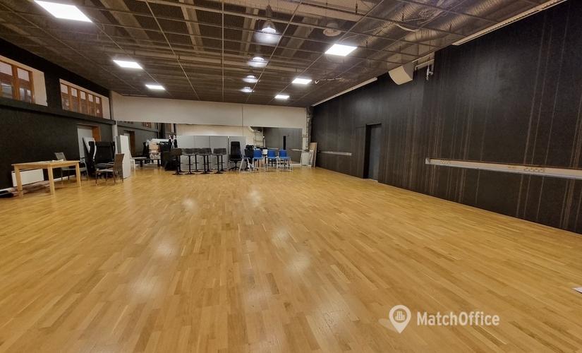 This approximately 200 m² space has previously been used as a dance studio. It includes its own toilet facilities, and shared shower facilities are available in the hallway. The ceiling height is about 6 meters. The space is suitable for sports activities, but activities producing loud noise are not suitable.