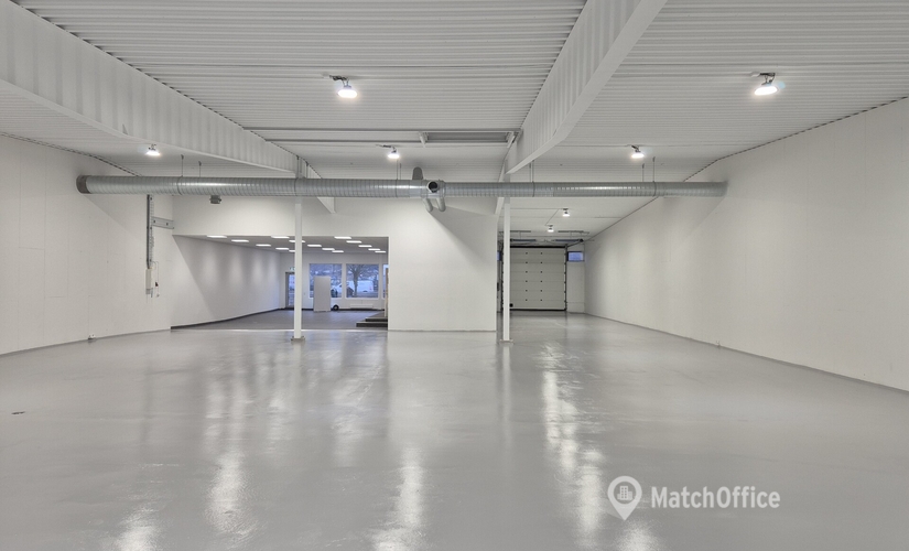 Newly renovated warehouse/exhibition space 650 sqm with good visibility.