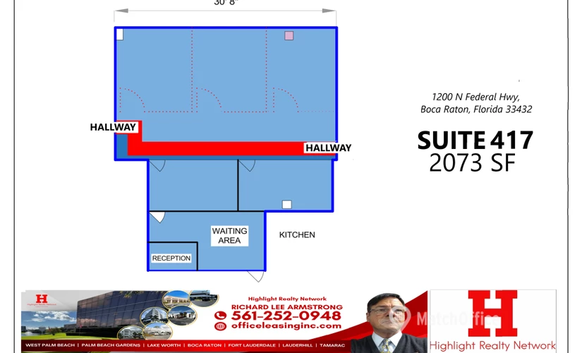 This 2073 SF Suite 417 Professional Office Space is Now Available for Rent. It is located at 1200 N Federal Hwy., Boca Raton, FL 33432, with 3 FREE MONTHS with a rate that includes utilities, building services, and property expenses. Additionally, this workspace is spacious, ensuring your comfort while you work, making it an ideal environment for your business. We are committed to providing exceptional service to our tenants and maintaining a safe and enjoyable working environment. Talk to us and book your viewing now!